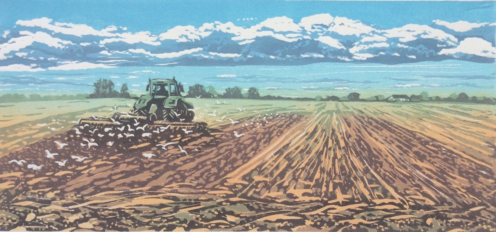 Reduction Linocut created and hand printed by Louise Stebbing. Louise lives and works in Norfolk where she finds most of her inspiration. Through her intricate linocuts and her striking use of colours she manages to capture the moods of each season. Her work has won numerous national awards and has been published in various art books.