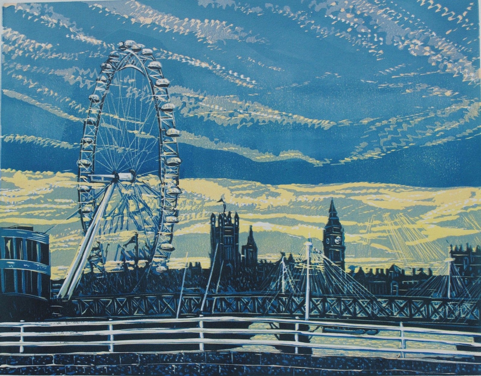 Reduction Linocut designed and hand printed by Louise Stebbing, numbered and signed on the front. Louise lives and works in Norfolk, where she finds most of her inspiration. Her work has won numerous awards and been frequently selected for art publications.