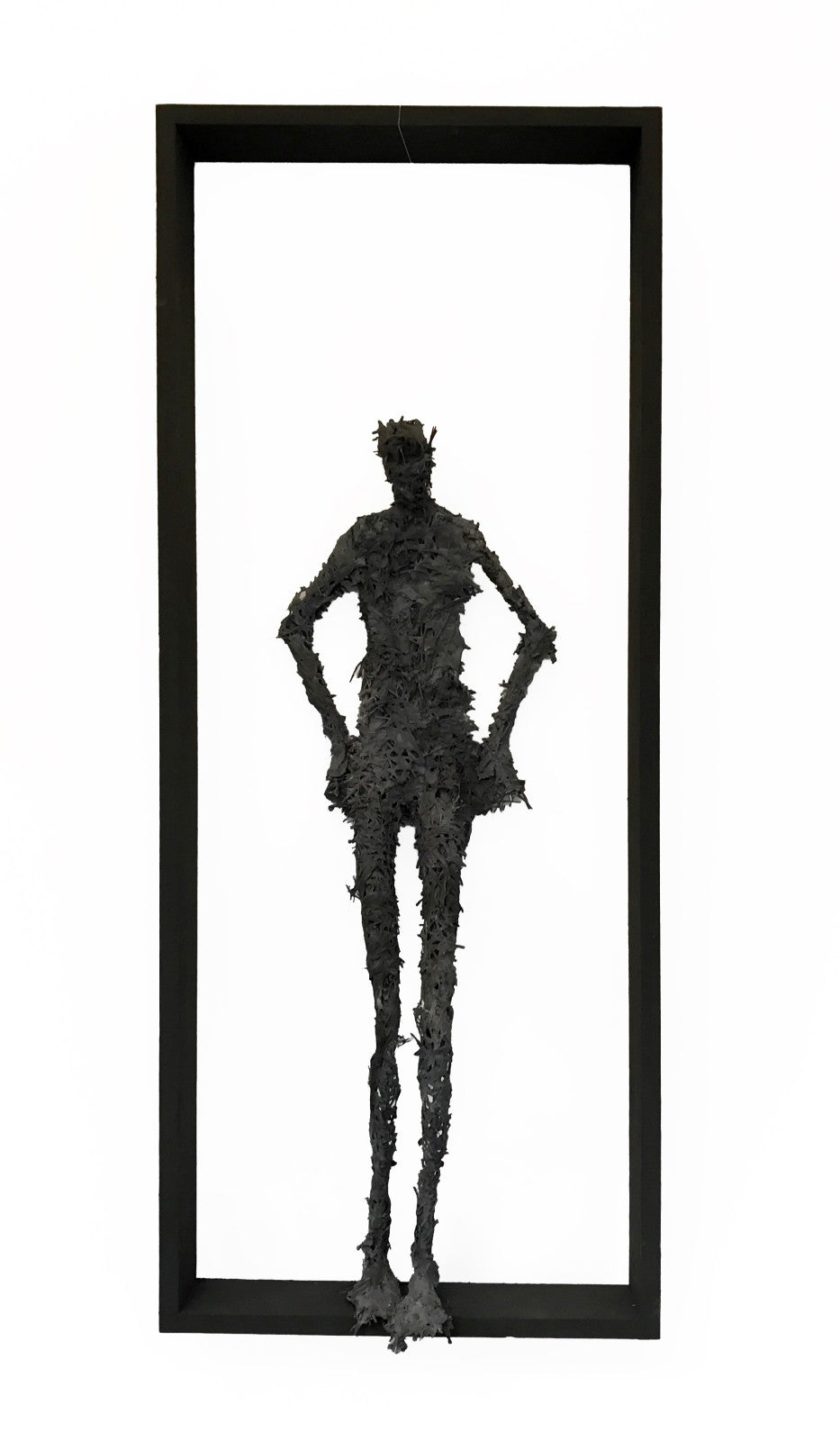 A unique Jesmonite Fibreglass sculpture in a wood frame by Laurence Perratzi, part of her 'Women's thoughts' series. Laurence Perratzi is a figurative artist exploring the body’s expression. Her work is a reflection on movement strongly influenced by her athletic background where poise and balance are paramount. Do I? is a sculpture supposed to be hung on the wall. Laurence Perratzi's sculptures are shipped in hand-made wood boxes to protect them during transport.