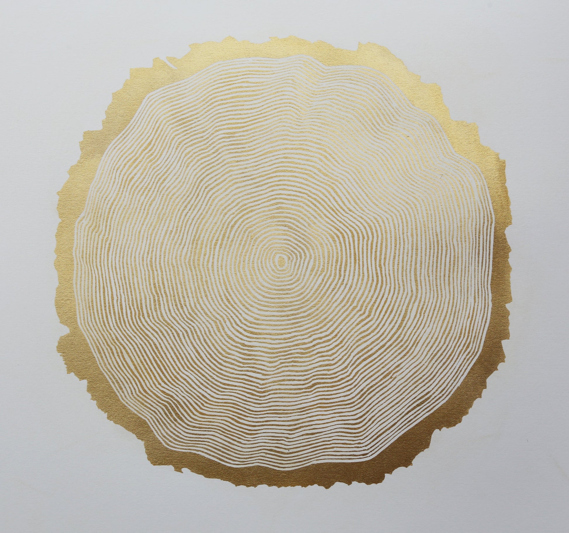 Screen-print with gold pigment, signed and numbered on the front. The tree cut is actually printed using fresh gold pigments, which give it a natural gold colour and varies according to the direction of the light. Printed on Magnani Litho. Designed to go with "Legacy" if bought as a pair, but works well as a single print too.