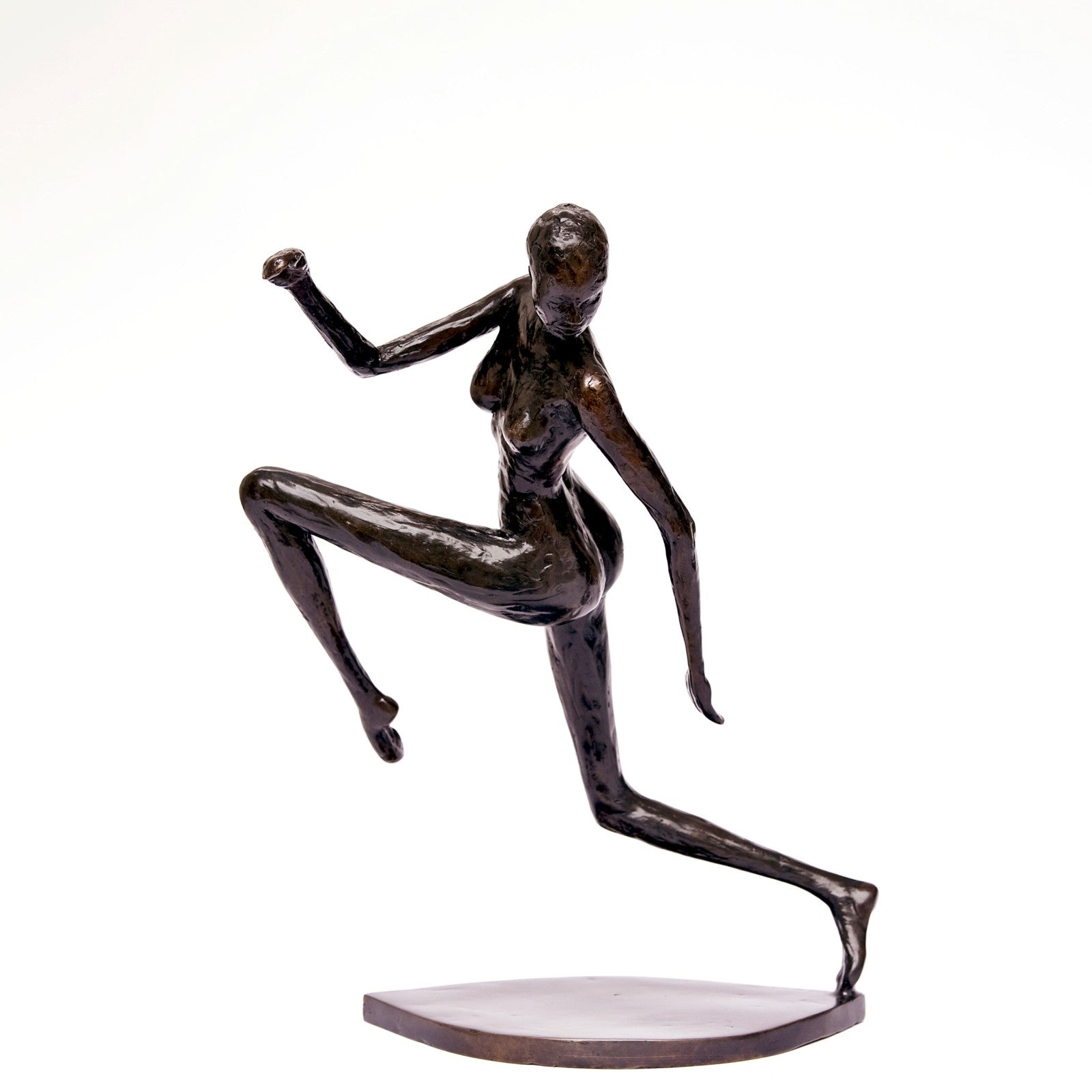 Bronze sculpture by Laurence Perratzi. Laurence Perratzi is a figurative artist exploring the body’s expression. Her work is a reflection on movement strongly influenced by her athletic background where poise and balance are paramount. The figures challenge gravity with subtle poses or sometimes snapshot of body in action. Laurence Perratzi's sculptures are shipped in hand-made wood boxes to protect them during transport.