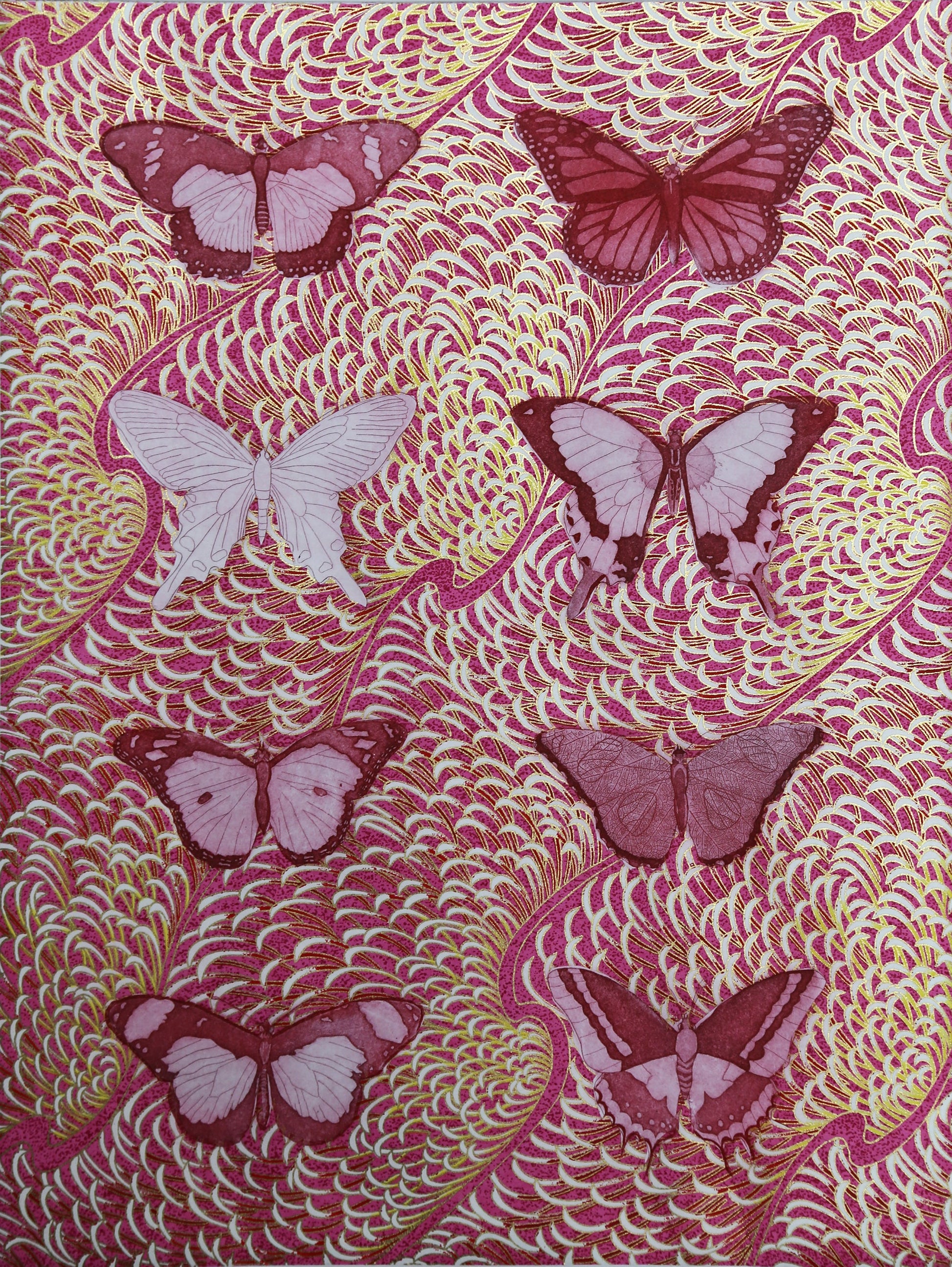 Etching with chine-collé (chiyogami paper), 40x30cm, edition of 2. Available unframed.