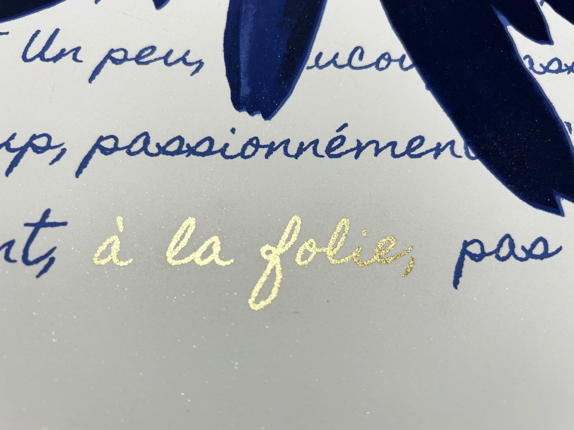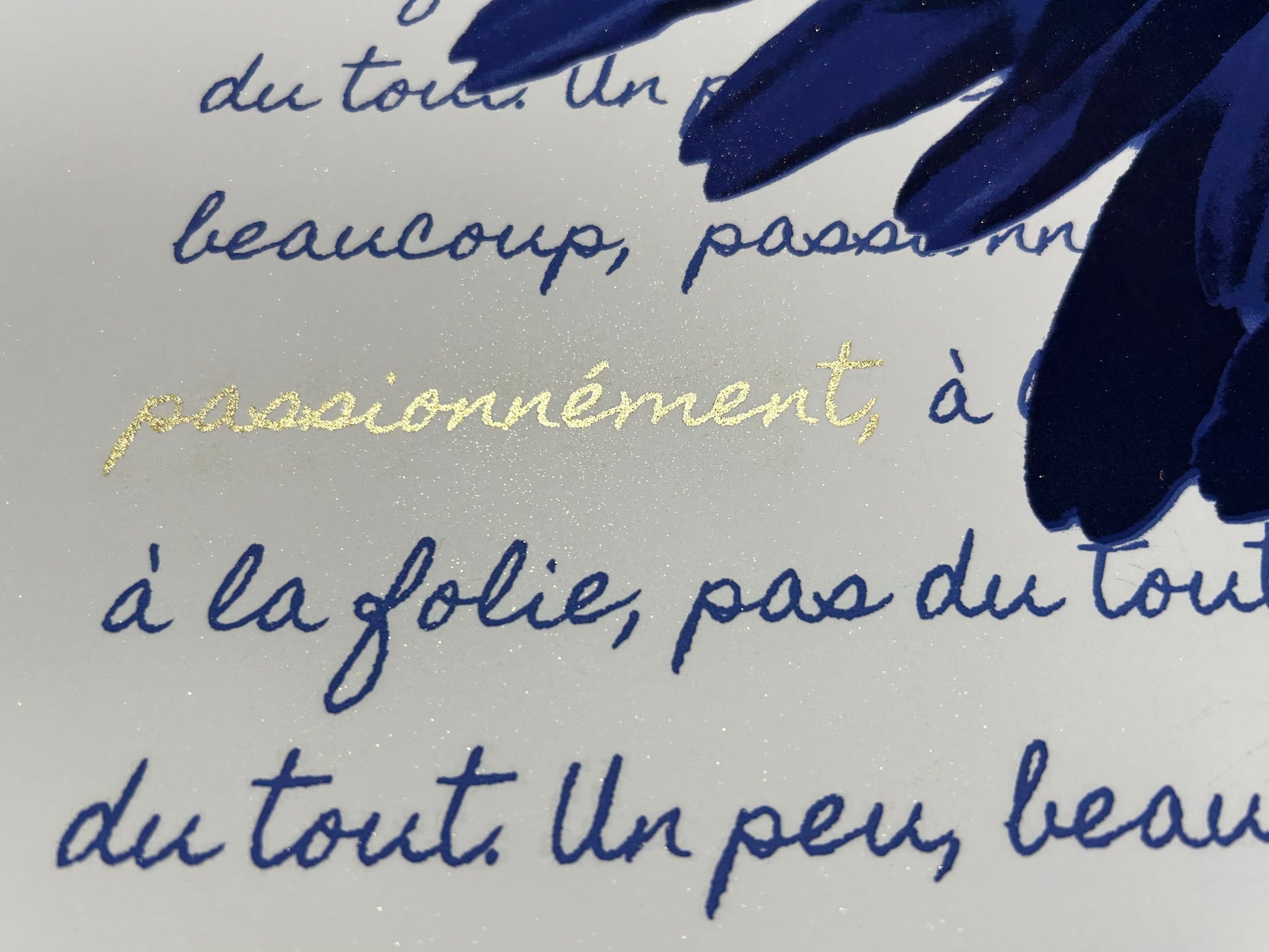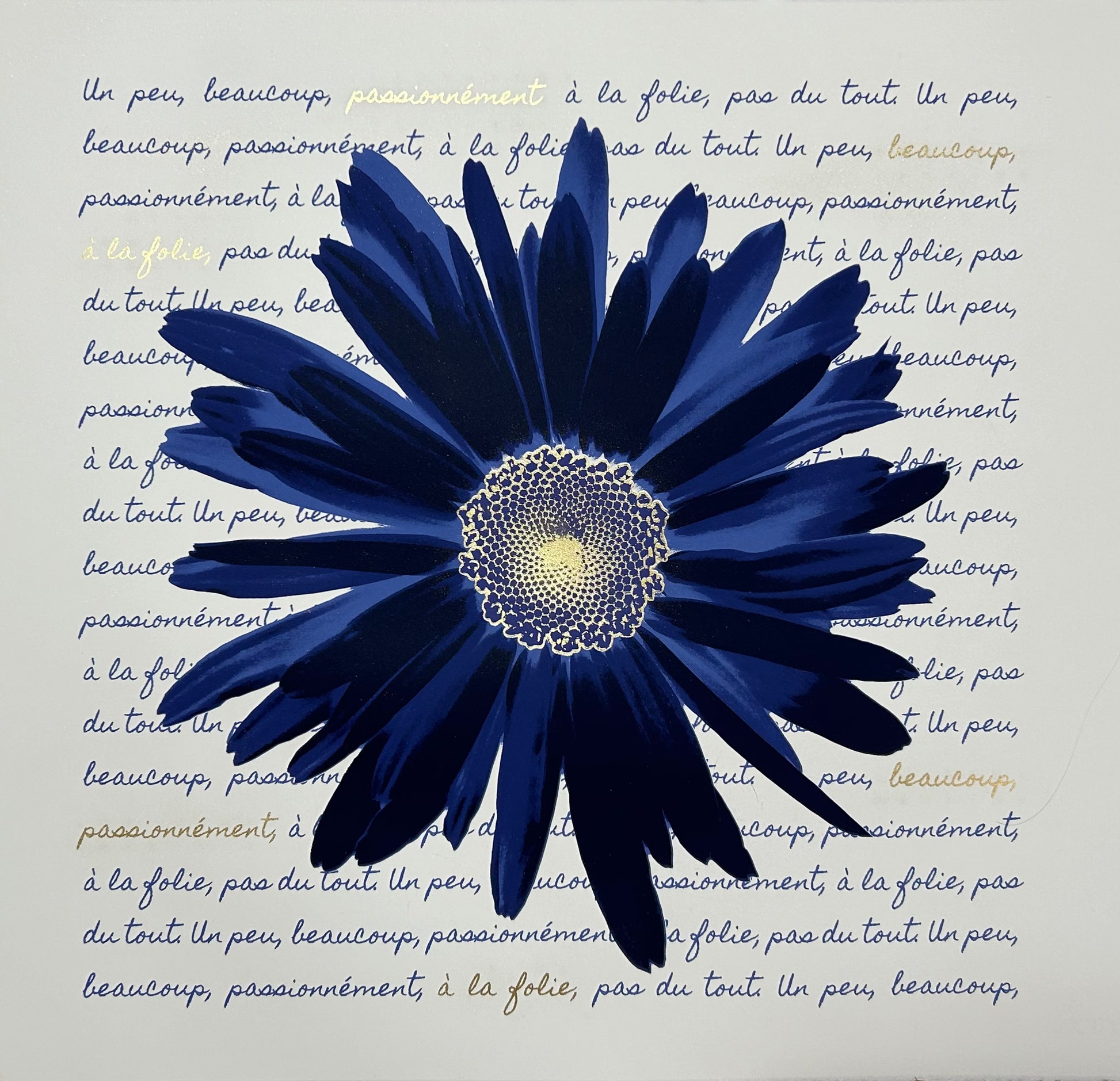 Some of the words and the daisy's "heart" are printed using fresh pigments, which give a natural gold colour and varies according to the direction of the light.