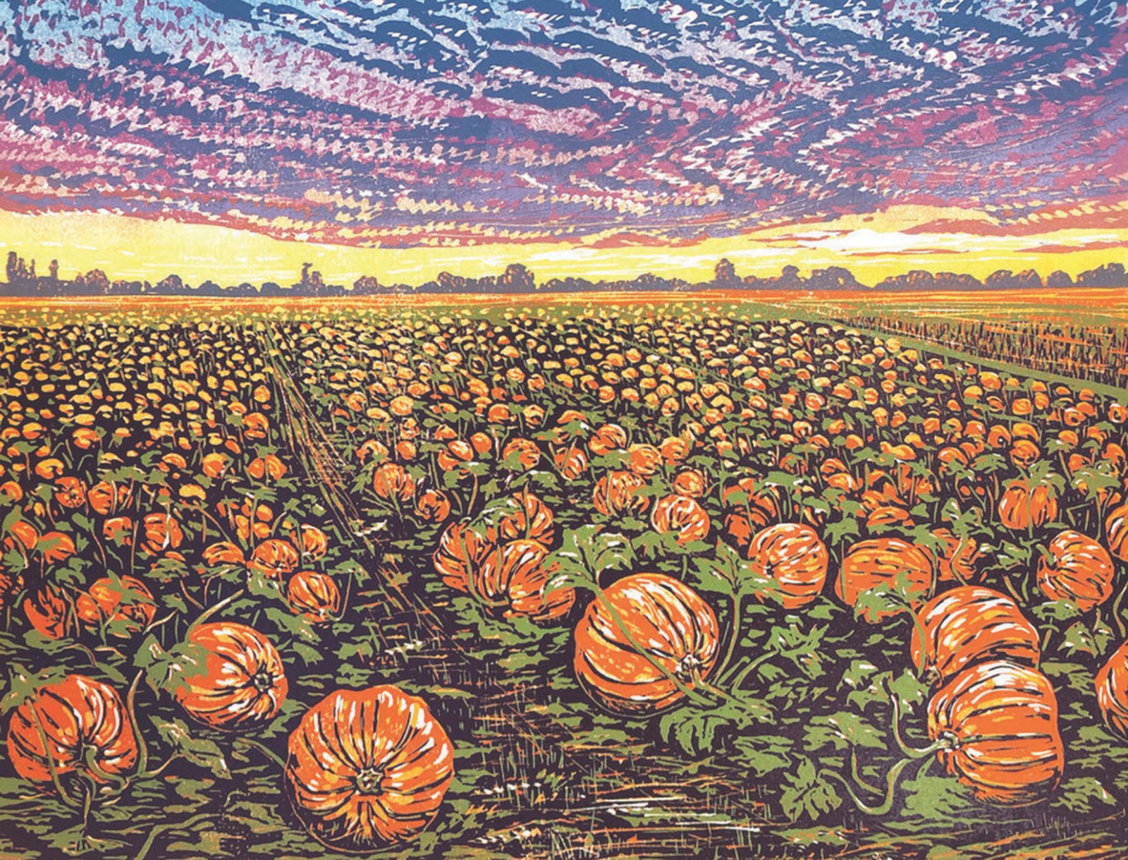 A reduction linocut on paper by Louise Stebbing, signed and numbered on the front. Louise always takes her sketchbook and watercolours while out and about, and when she returns to the studio, produces these amazingly colourful and intricate reduction linocut prints. See photos for details from her sketchbbok and a glimpse into her creative process.