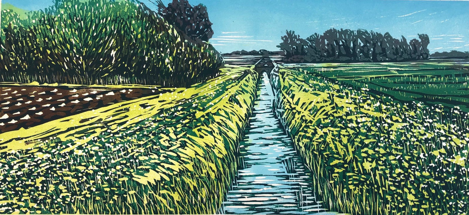 Reduction Linocut designed and hand printed, on Fabriano Paper with Oil based inks, by Louise Stebbing.