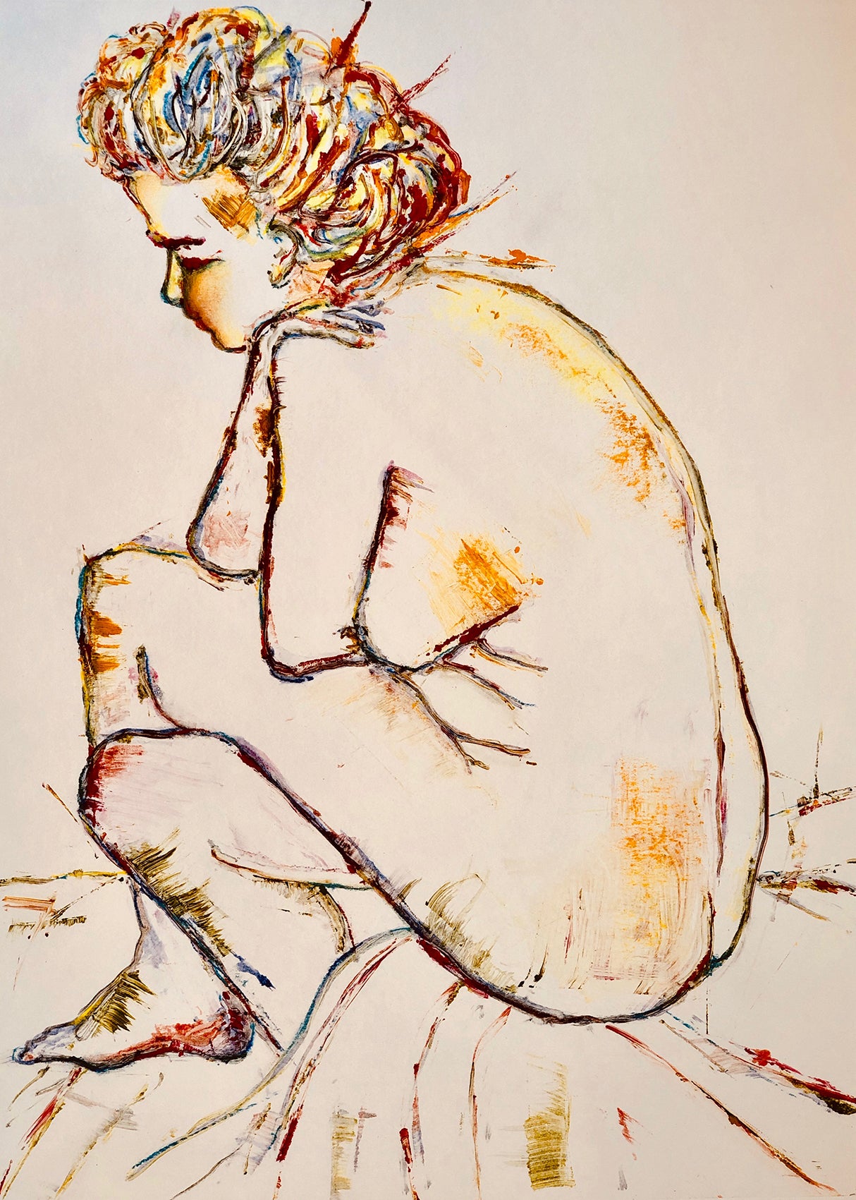 Monotype on paper by Despina Symeou, inspired by her life drawing sketches. Each print in the very small varied edition of 3 is individually created, like a painting, therefore is slightly different from the other ones. Signed and numbered on the front.