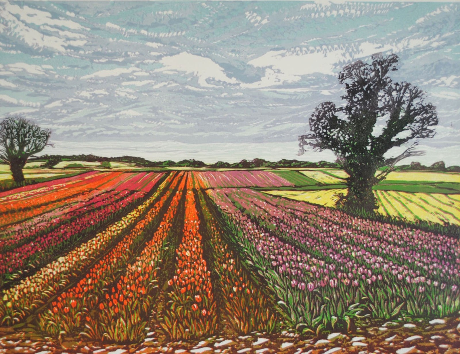 Reduction Linocut designed and hand printed by Louise Stebbing, numbered and signed on the front. Louise lives and works in Norfolk, where she finds most of her inspiration. Her work has won numerous awards and been frequently selected for art publications.